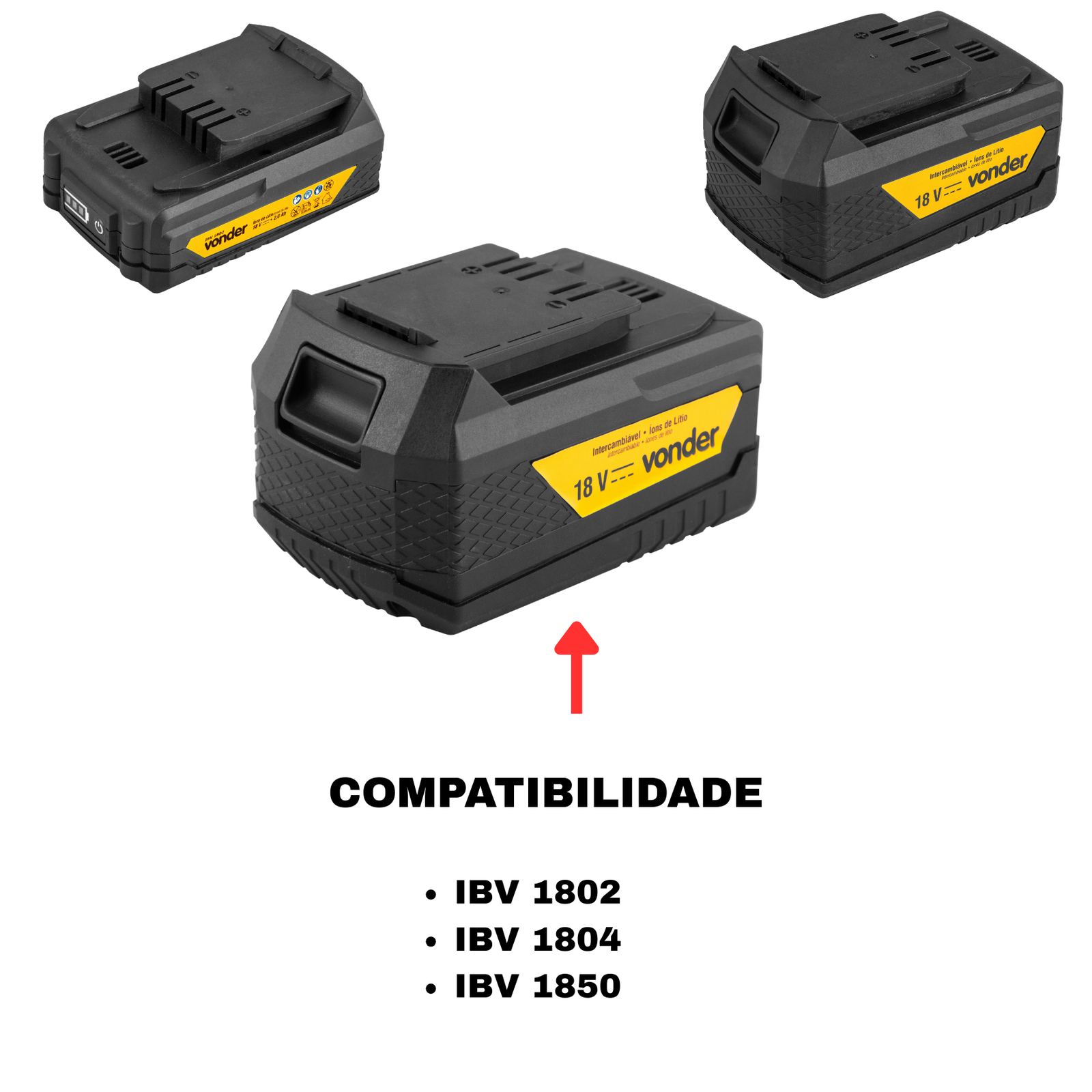 Compatível com baterias 2Ah, 4Ah, 5Ah e 8Ah Vonder