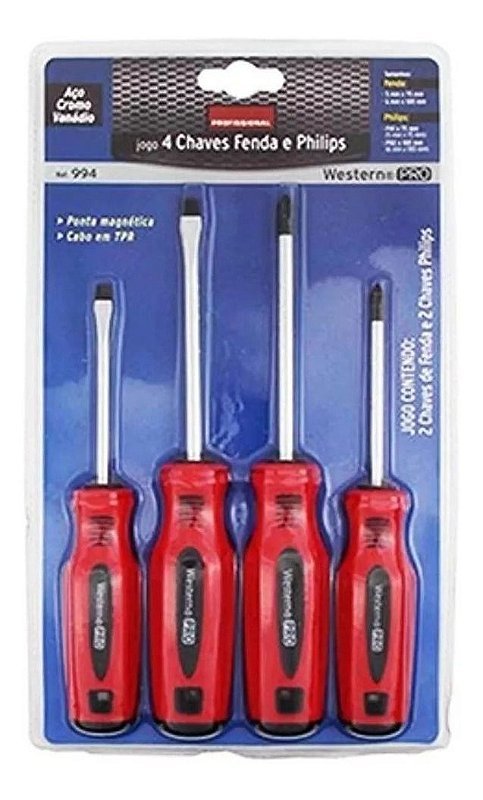 Jogo com 4 Chaves de Fenda/Philips – Western – 994