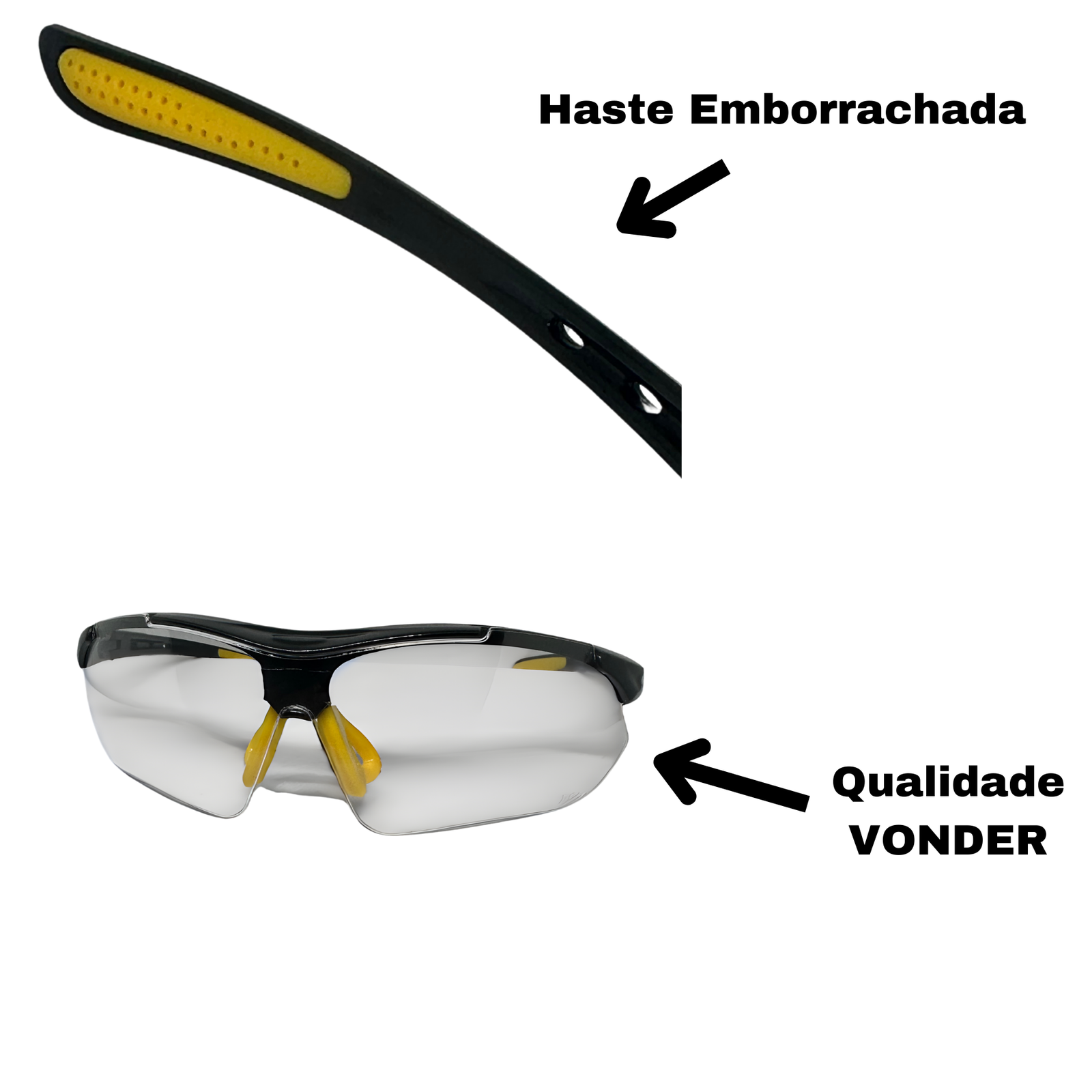 A lente transparente de alta resistência protege contra partículas, impactos, riscos e raios UV. Leve, estável e com excelente acabamento, é a escolha certa para quem trabalha em ambientes como oficinas, laboratórios, construções, marcenarias, serralherias e áreas químicas.