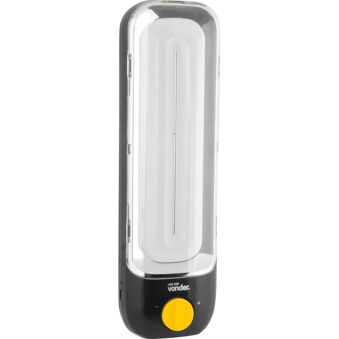A Lanterna Recarregável de Emergência Vonder LRE 350 é prática, potente e ideal para uso residencial ou profissional. Com 52 LEDs SMD de alto desempenho, oferece fluxo luminoso de 350 lúmens e seletor de intensidade, garantindo iluminação adequada para cada situação e maior economia da bateria. Recarregável via cabo Micro USB, possui design ergonômico, estrutura resistente em plástico e autonomia confiável. Atenção: o acionamento é manual e não acende automaticamente em caso de falta de energia.