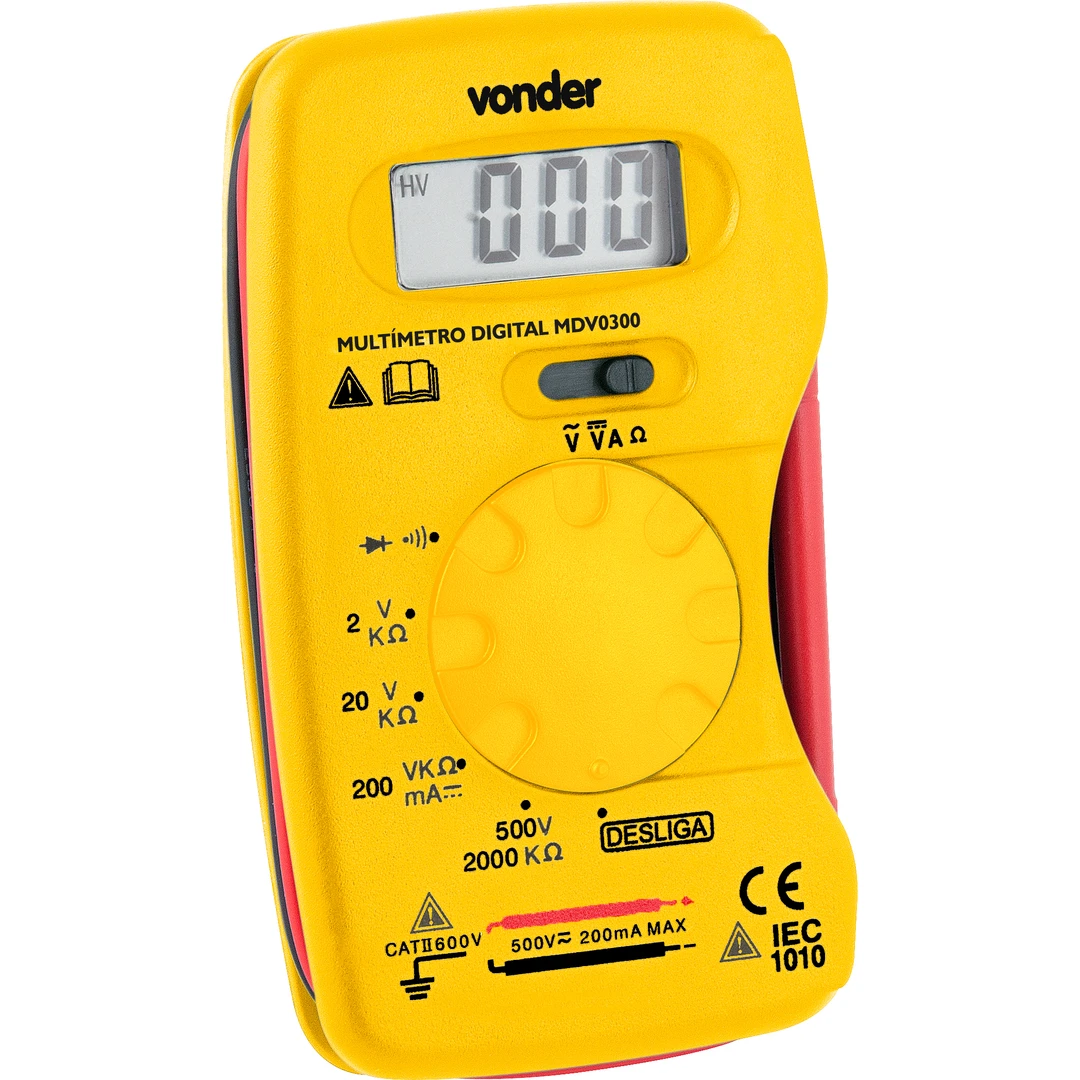 O Multímetro Digital Vonder MDV 0300 é a ferramenta ideal para técnicos em eletrônica e eletrotécnica que precisam identificar defeitos em aparelhos e sistemas com praticidade e precisão. Compacto, leve e de fácil operação, reúne em um único aparelho diversas funções como voltímetro, amperímetro, ohmímetro, além de teste de continuidade e diodo com alerta sonoro. Projetado para trabalhos em baixa tensão, atende às normas de segurança CAT II 600 V, oferecendo confiabilidade em medições de tensão AC/DC, corrente DC e resistência. Uma solução prática para profissionais e estudantes que buscam custo-benefício e portabilidade.