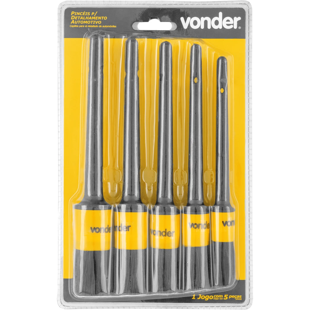O Jogo de Pincéis para Detalhamento Automotivo Vonder é indispensável para quem busca um acabamento perfeito na limpeza de carros e motos. Com cerdas macias e flexíveis, é ideal para alcançar cantos, frestas e detalhes internos ou externos sem riscar a superfície. Pode ser utilizado seco ou molhado, oferecendo praticidade e versatilidade para qualquer situação. O kit conta com 5 tamanhos diferentes, garantindo maior eficiência em cada aplicação.