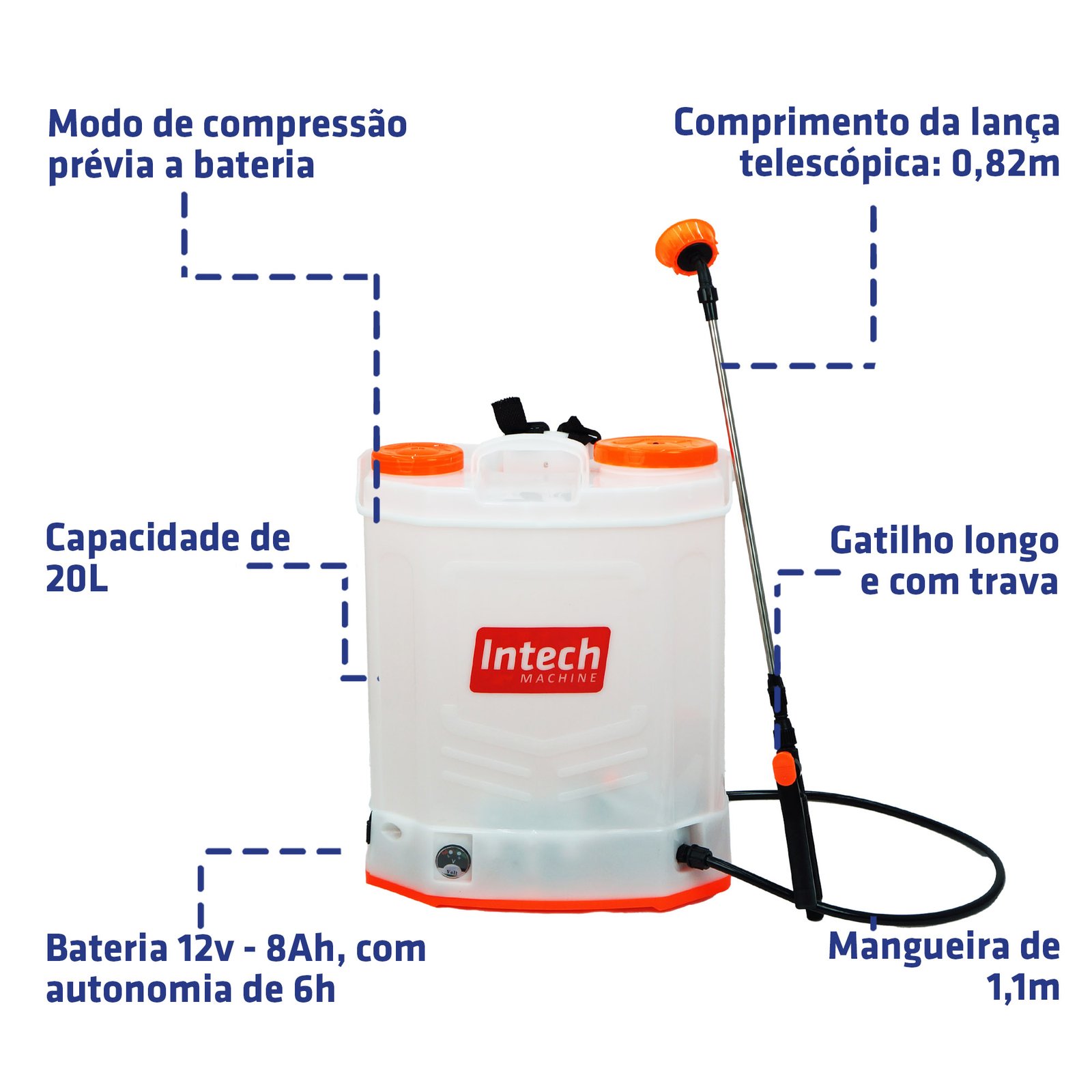 Pulverizador Costal 20L Intech Machine com Bateria 12V e 4 Bicos Intech