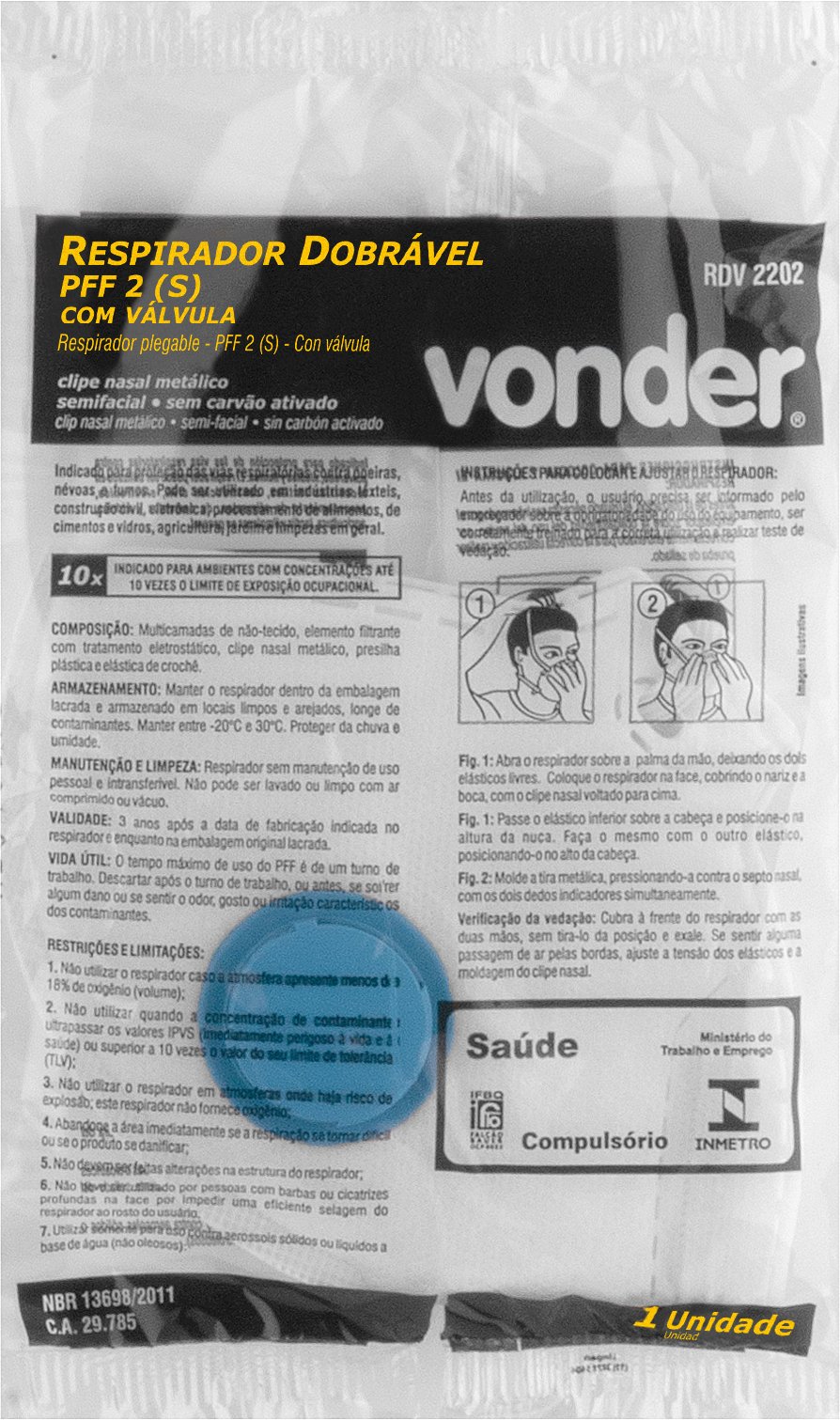 Respirador Dobrável Vonder PFF2 RDV 2202 com Válvula – Uso Profissional